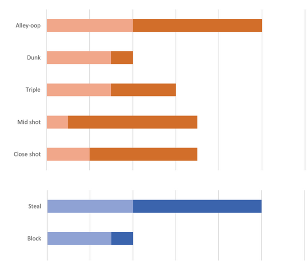 This graphical representation allows for a clear and intuitive understanding of the progression and level of each basketball skill.